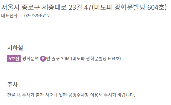 서울시 종로구 세종대로 23길 47(미도파 광화문빌딩 604호)